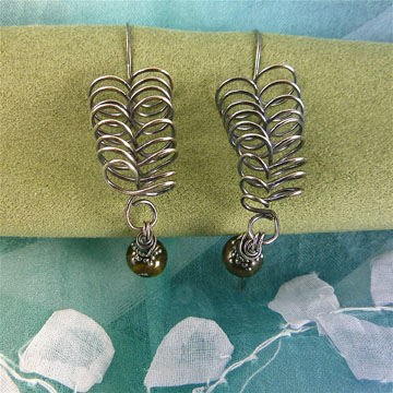 The four designs include (from the top): Squiggle earrings, Angel's Earrings (both featured in my new book-with-DVD, Wire Art Jewelry Workshop), Ripple earrings (from Arty Jewelry II), and Snake Vertebra Earrings (pictured below)—this design is very similar to the one in Wire Art Jewelry Workshop but I have since added a few techniques to make them even more beautiful.