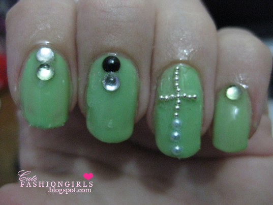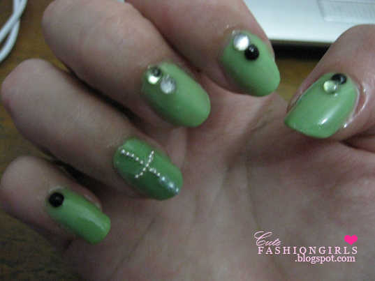 OK... I already took this green off and added some white in my nails.. But I still didn't finish new deco so I won't show now... Don't get curious I promise I'll post soon!