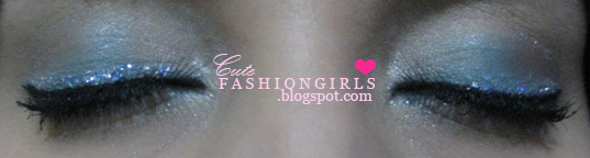I used the amazing blue in super model NYX runway palette and NYX candy glitter liner in crystal!