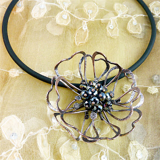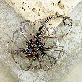 Here's another project from my upcoming ebook, Arty Jewelry III: the "Crazy-Daisy" pin. It takes some effort to make, but it sure is worth it! I love making these, using either copper (pictured above) or sterling silver wire.