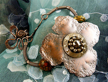 I especially enjoyed designing a freeform flower (don't ask me which species it is, as I have no idea!), sawing it out, and making it come to life with lots of hammering and texturing. Using one of my favorite vintage metal buttons in the design was also a treat. I hope you had fun in your studio today... I sure did!